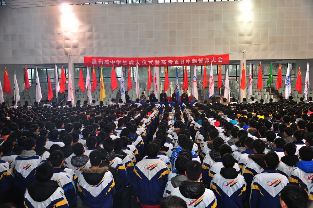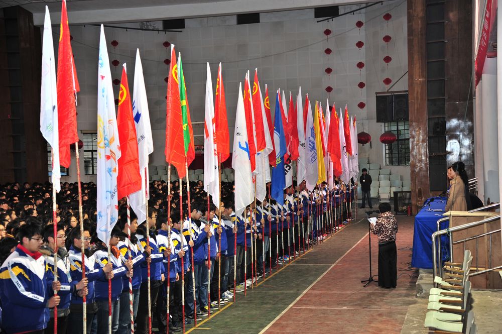 2013年3月1日下午 ,乐动网页版登入界面高三全体教师和学生以及学校领导在学校体育馆隆重举行2013年成人仪式暨高考百日冲刺动员大会。下午4点10分,高三年级各班举团旗、班旗组织进场。