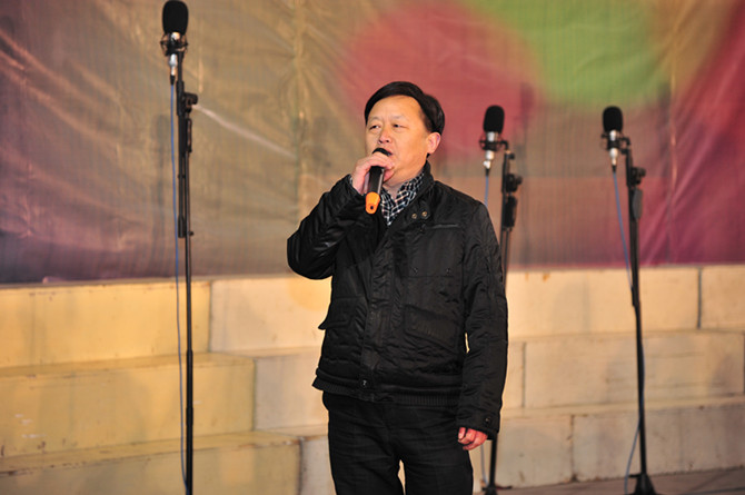 20个班级演唱完毕后,朱灿老师进行了专业又不失诙谐的点评,高一11班班主任周志军老师、高一年级音乐教师任晓洪老师分别为比赛献唱,全场掌声不断。