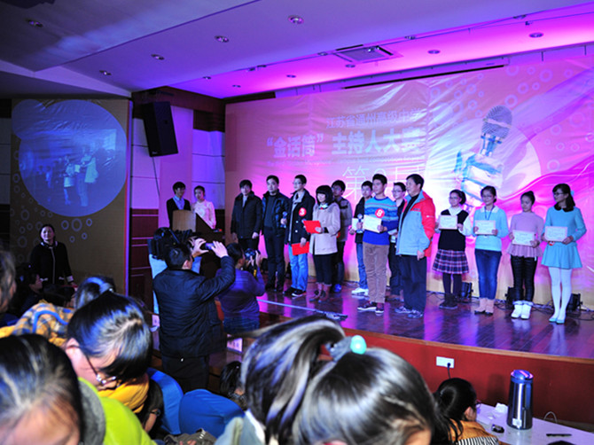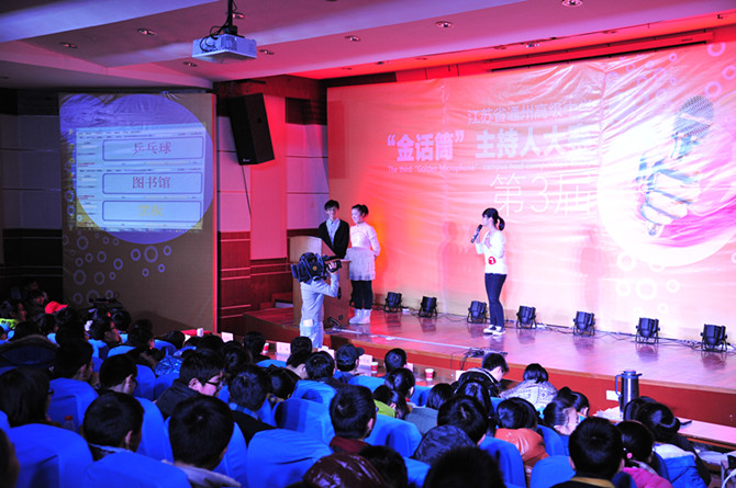 12月27日晚,在我校艺术楼报告厅内举行了第三届金话筒主持人大赛决赛。此前由团委会和学生会的学生干部组织了初赛,从高一、高二两个年级报名的40多名选手中选拔了20名同学进入决赛。