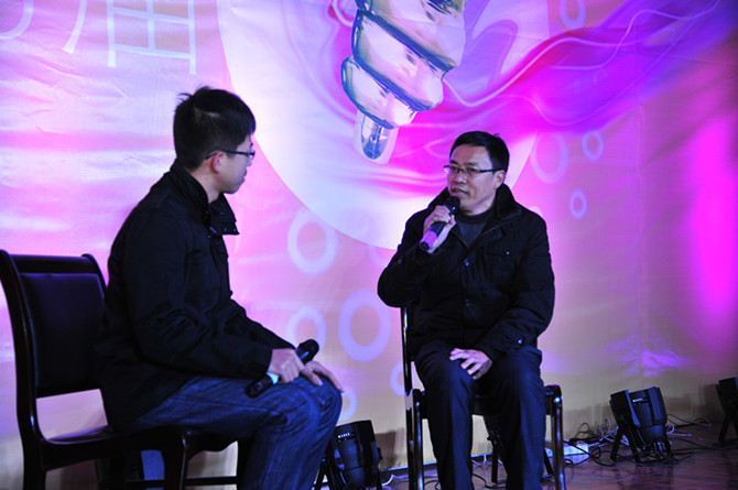 (选手时成帅与现场嘉宾教务处主任张圣兵老师)