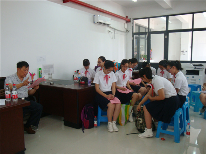上午7点40分,十位颁奖礼仪队队员身着白色衬衫,绽放青春活力的百褶裙来到体育组办公室进行礼仪培训。本次培训特由盐城阜宁县文联副主席文体局老局长顾宝华同志担任礼仪队展示主管。培训内容主要包括颁奖的流程以及形体训练。礼仪队同学将于颁奖时手托奖牌和获奖证书盘,为获得各个项目的前三名运动员颁奖。训练内容自然艰苦,但礼仪队的同学们忍受着酷热,默默流淌汗水,重复练习着步伐和身姿。我校学生艰苦奋斗的风气在礼仪队的同学们身上体现得淋漓尽致。