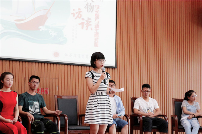 第五期邀请的嘉宾是我校2016届优秀毕业生代表及高二高三学生会、社团联合会的部分学生干部,访谈过程由第二十届学生会文艺部部长高二(10)班耿顾钰涵同学主持。