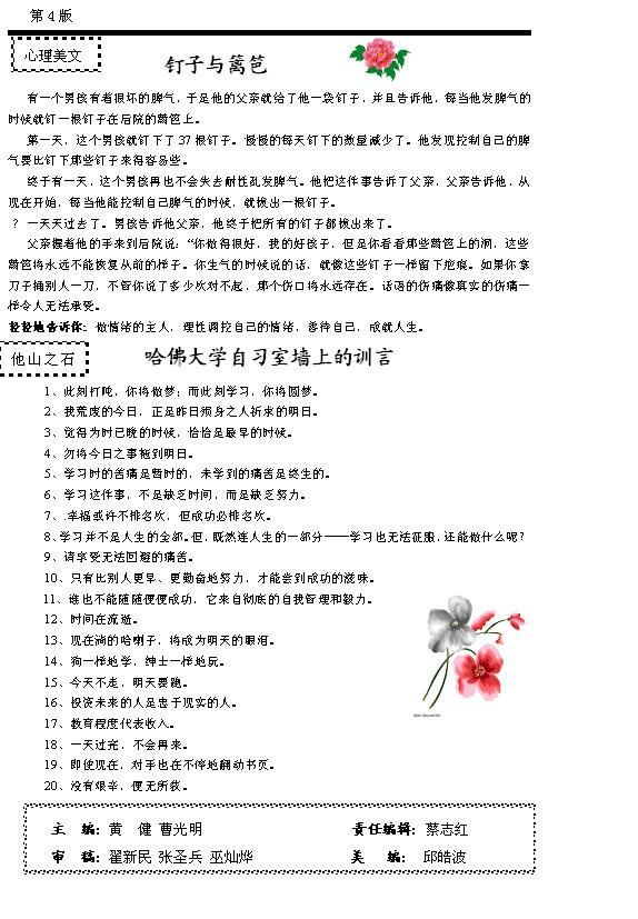 心理健康小报2008-2009学年度第五期第四版