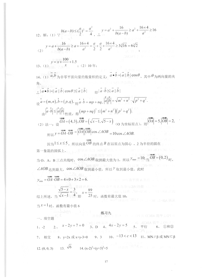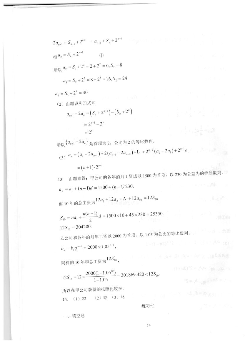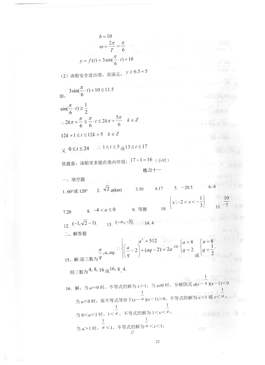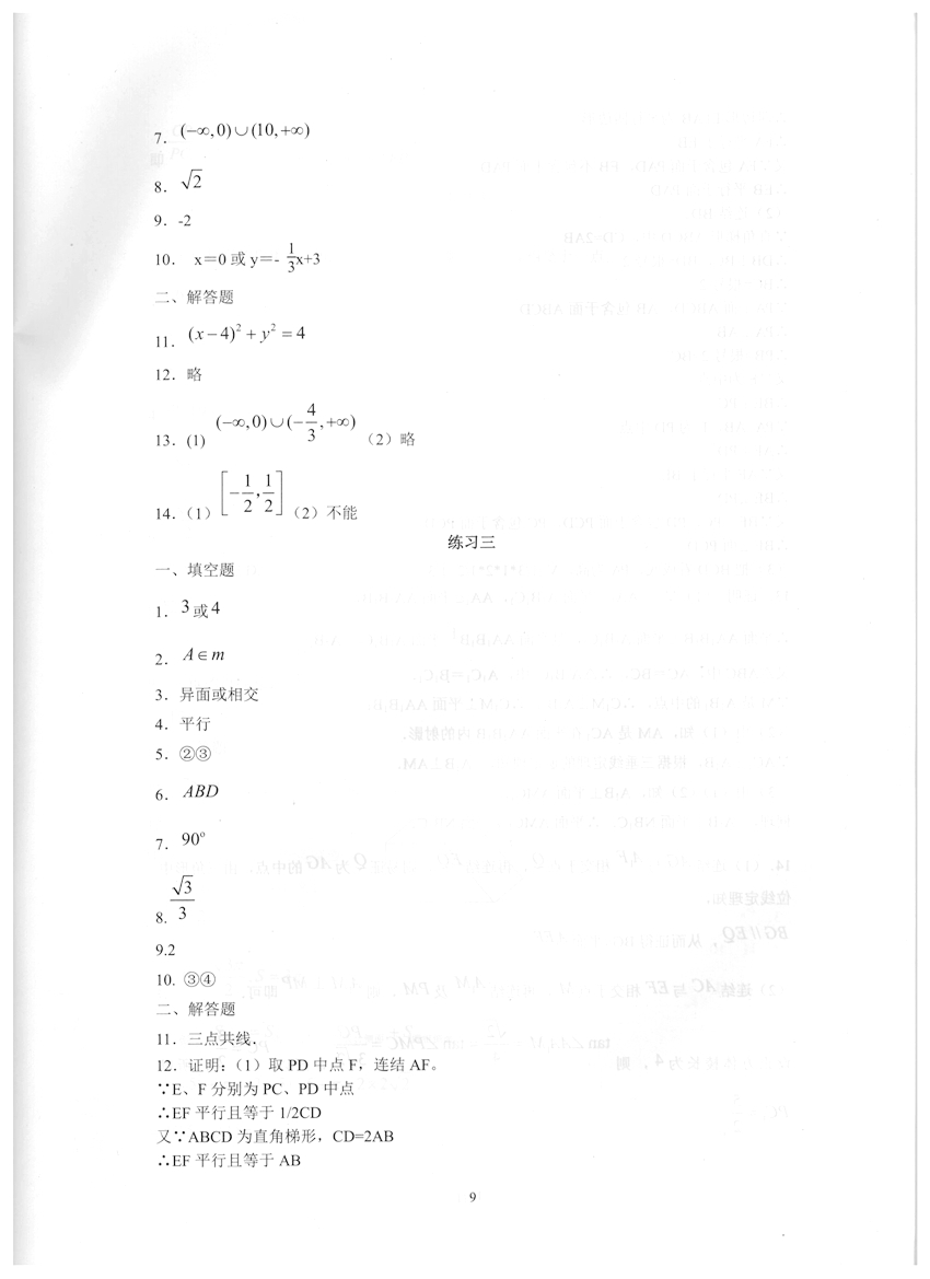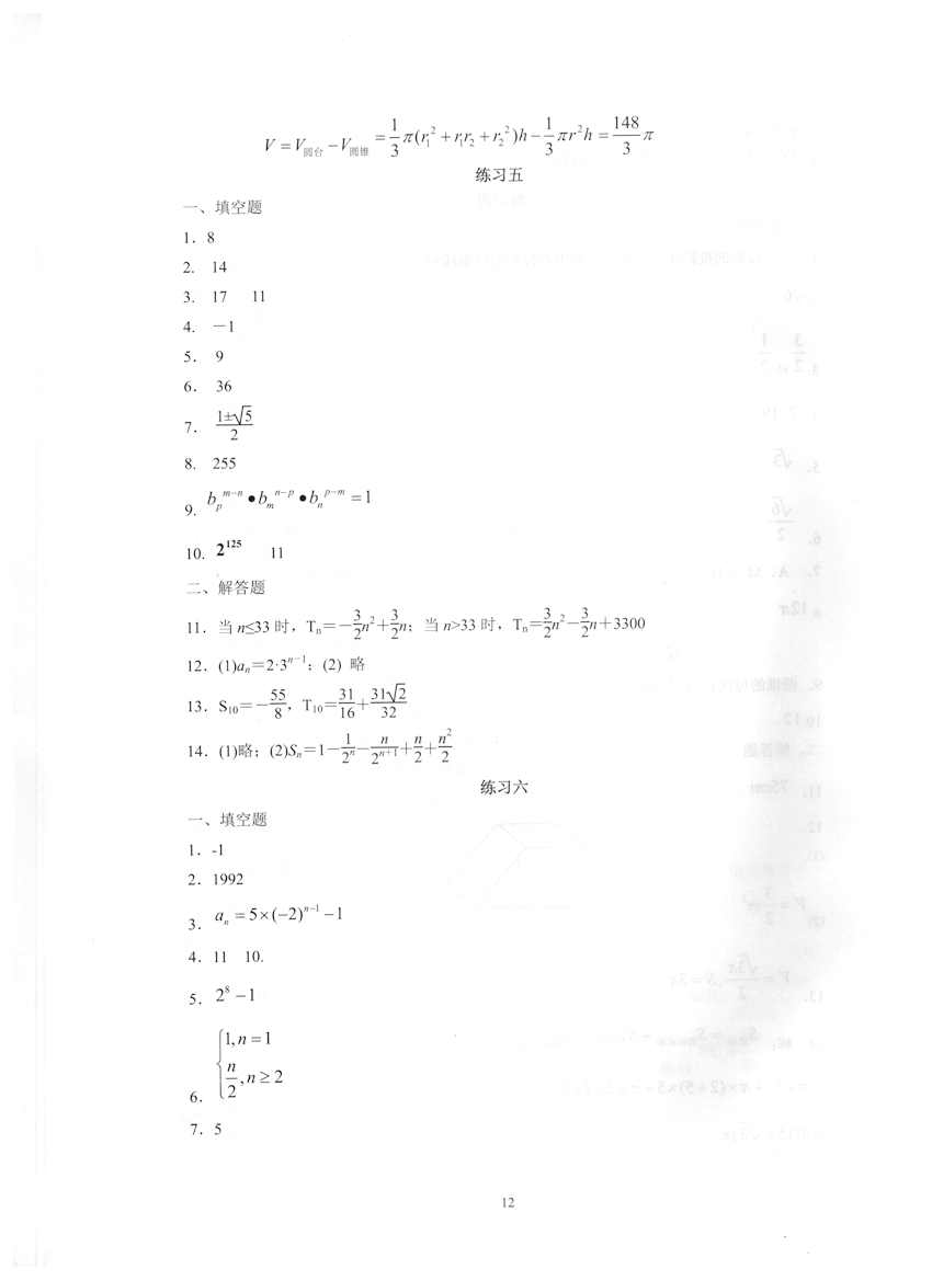 高一数学《暑假生活》答案