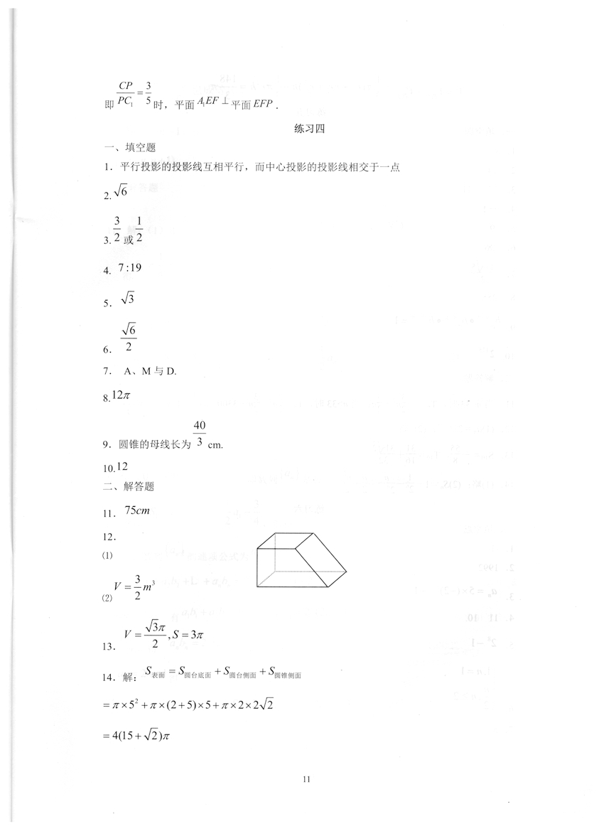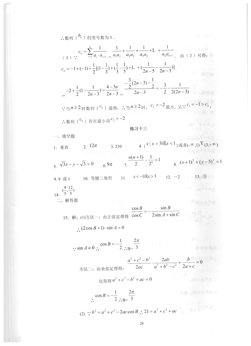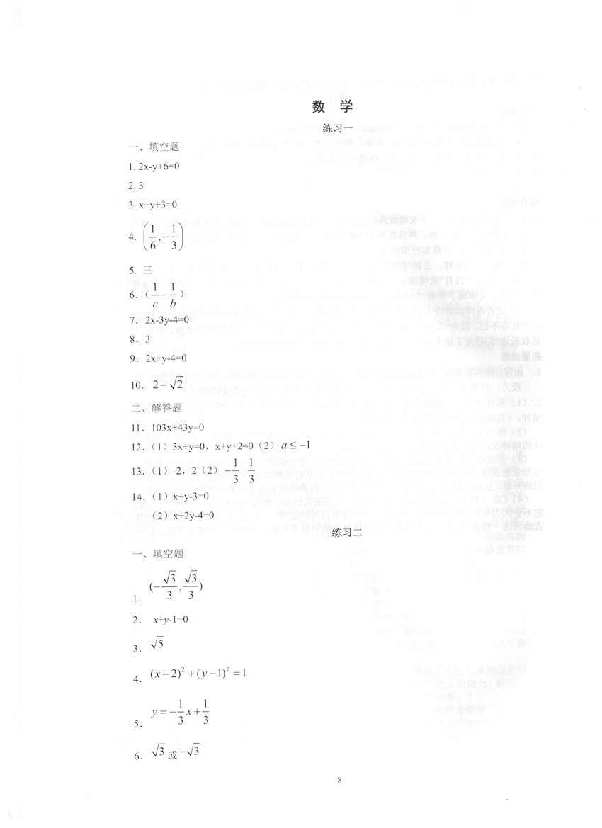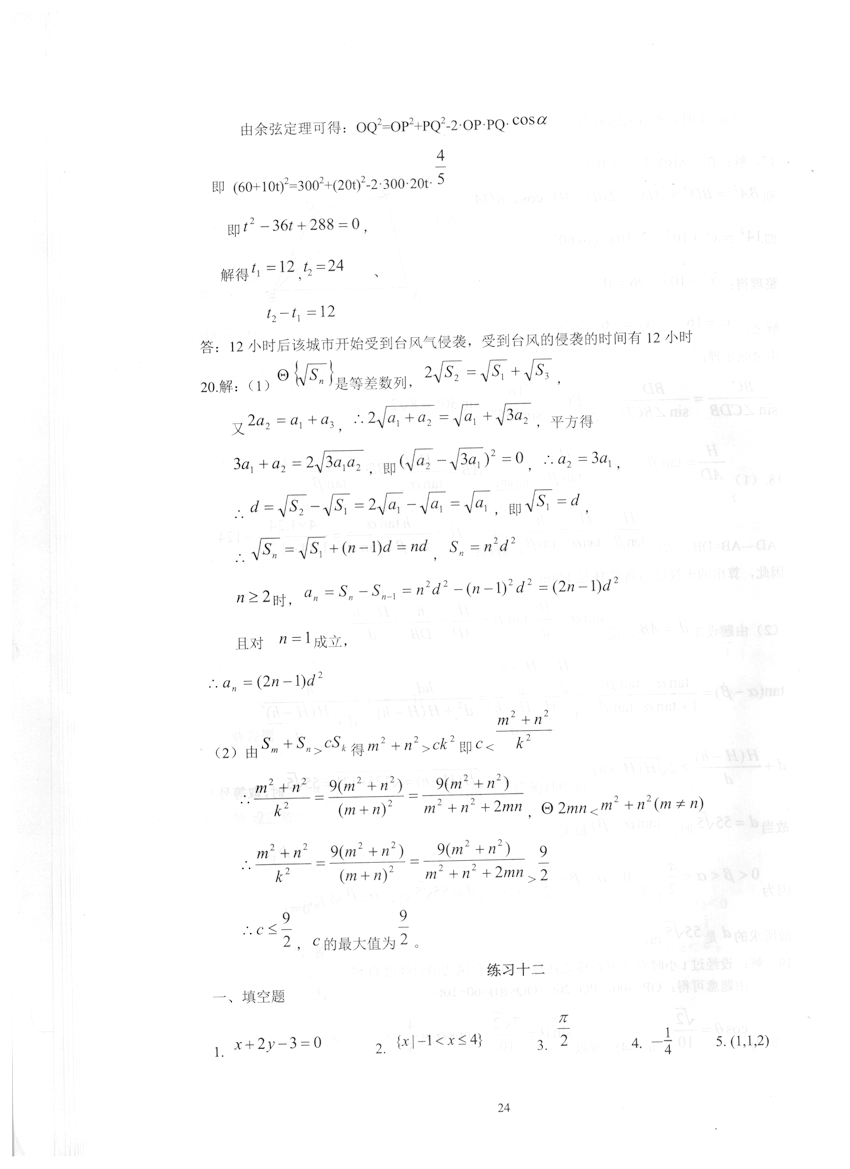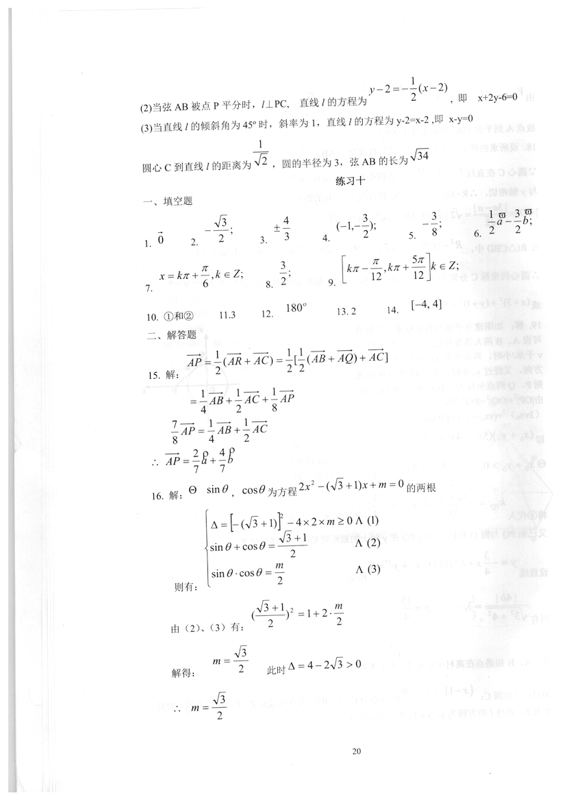 高一数学《暑假生活》答案