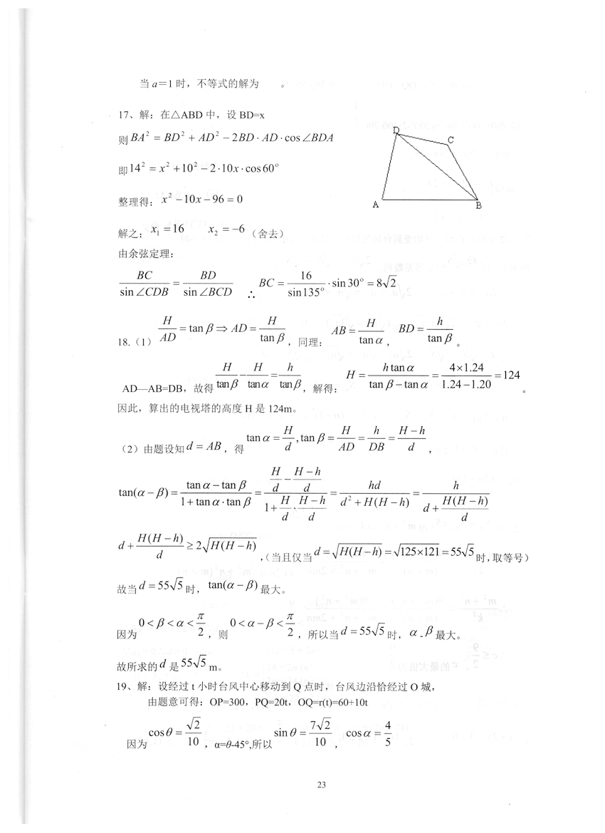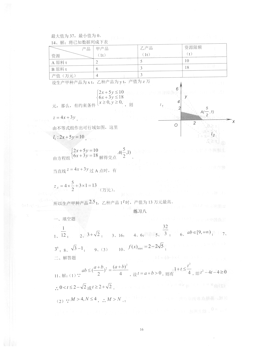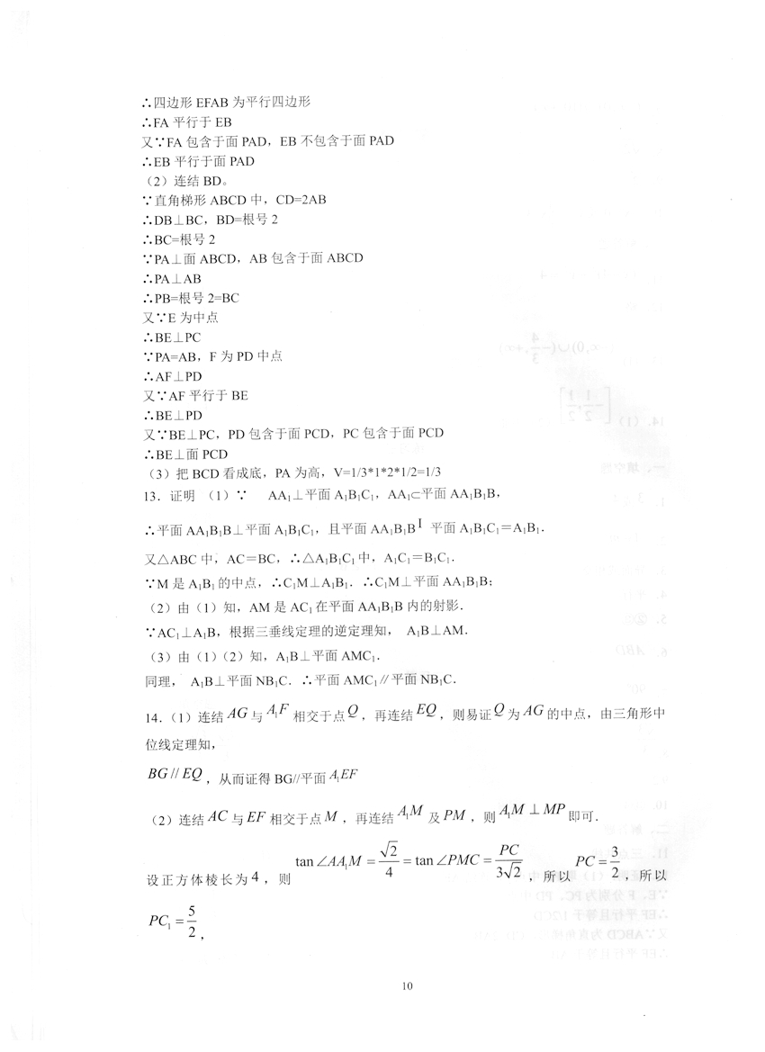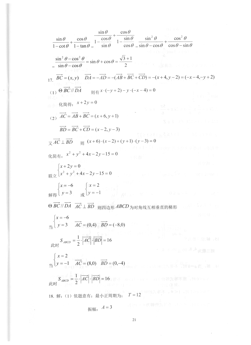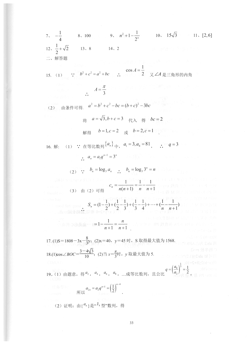 高一数学《暑假生活》答案