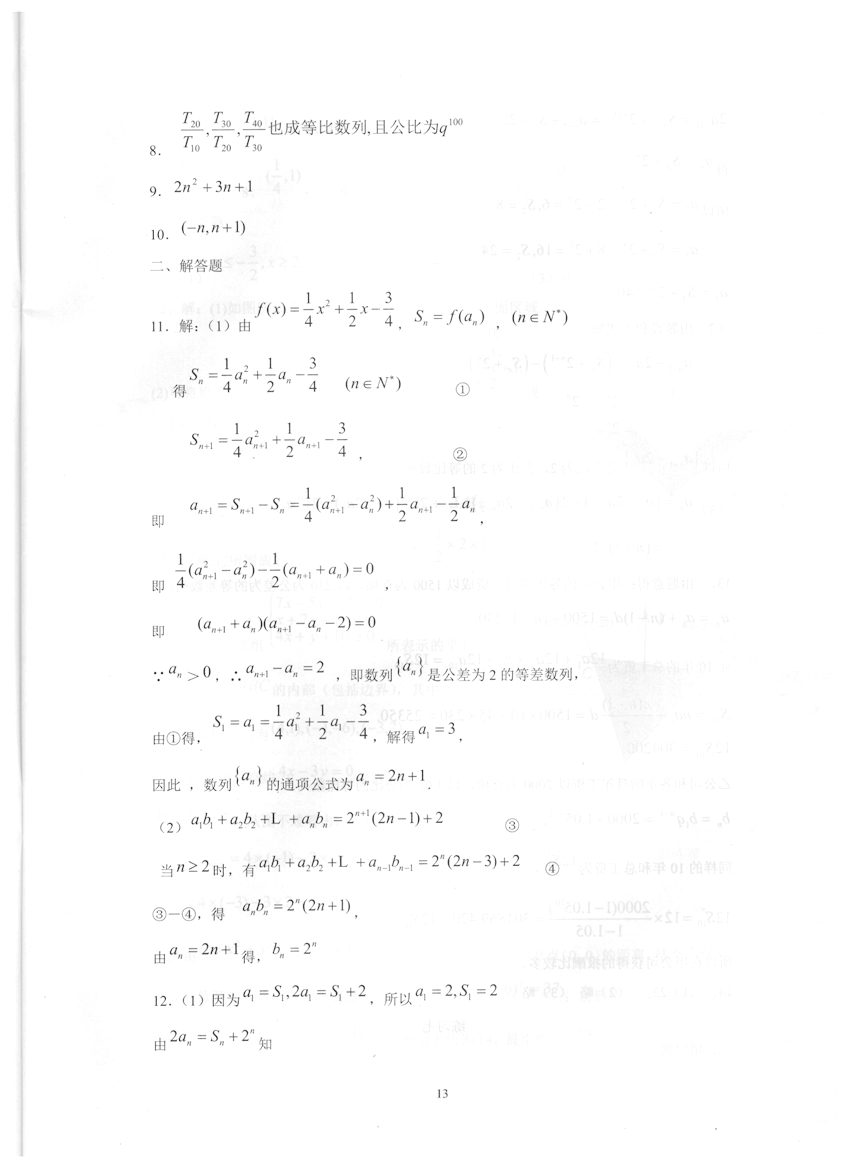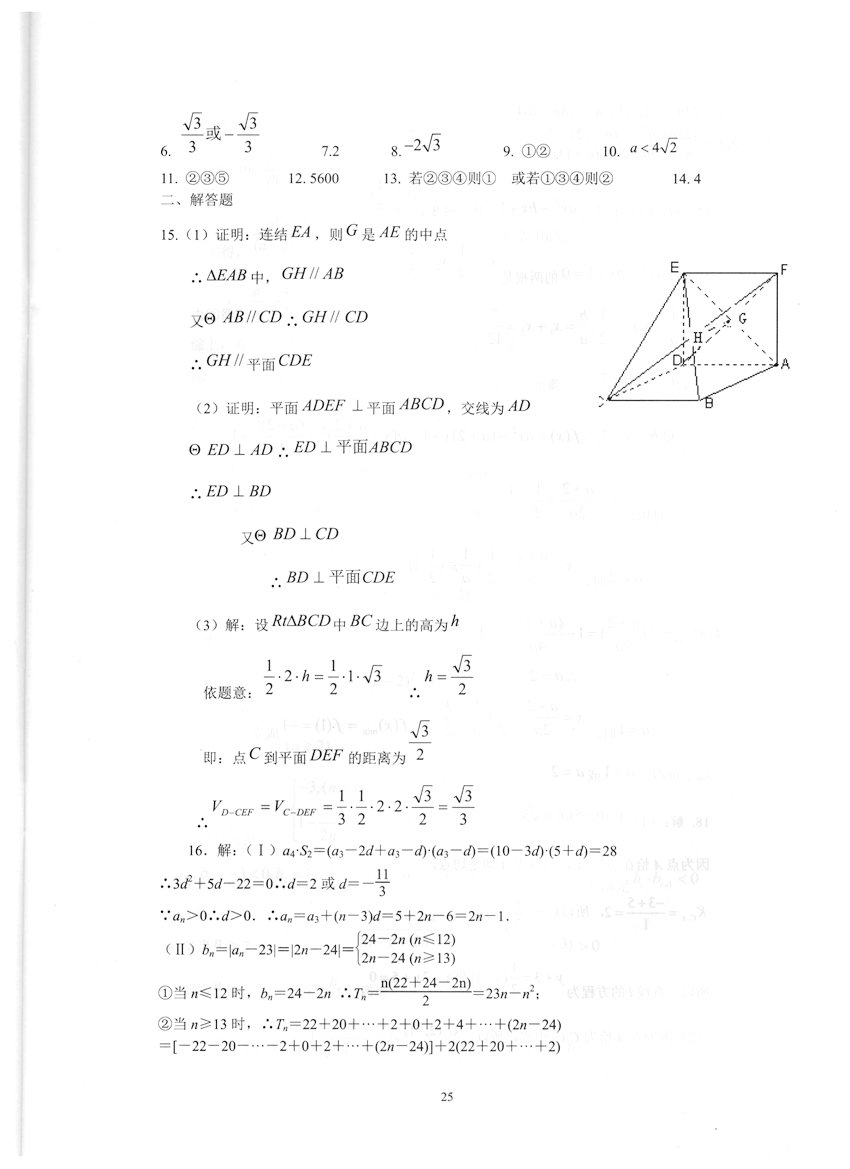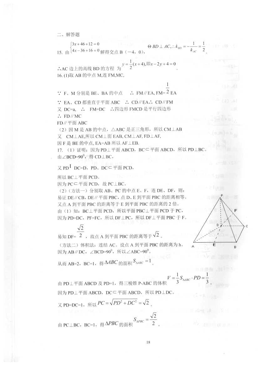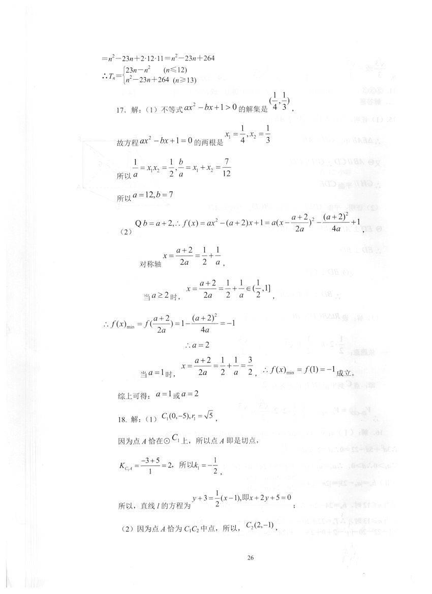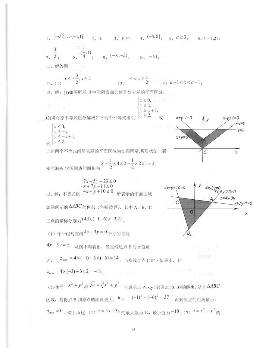 高一数学《暑假生活》答案