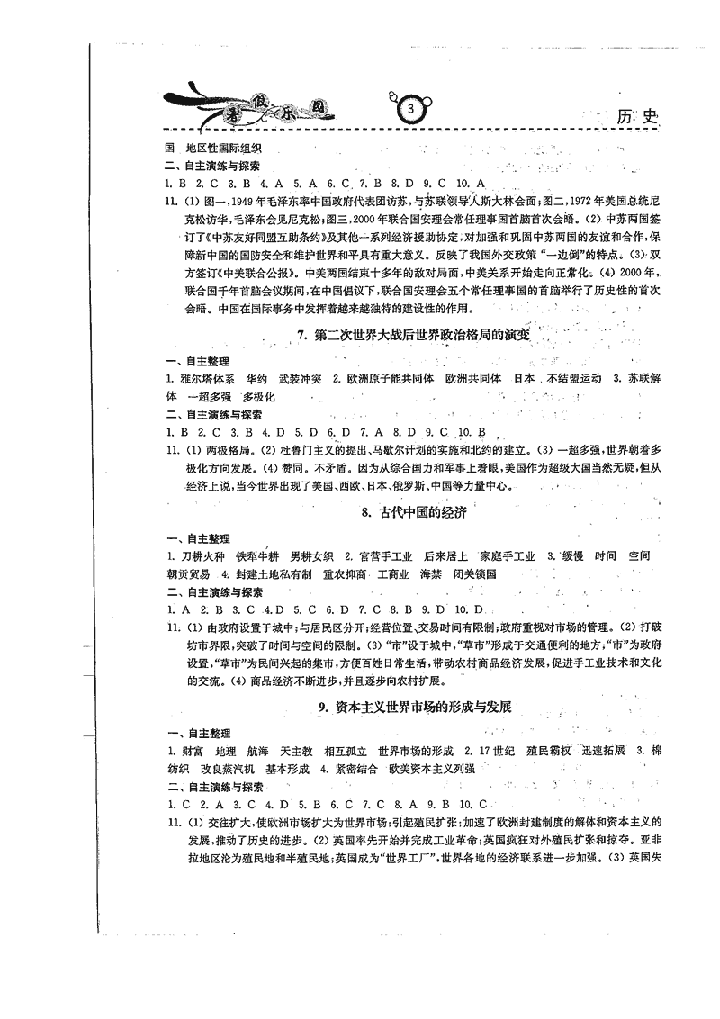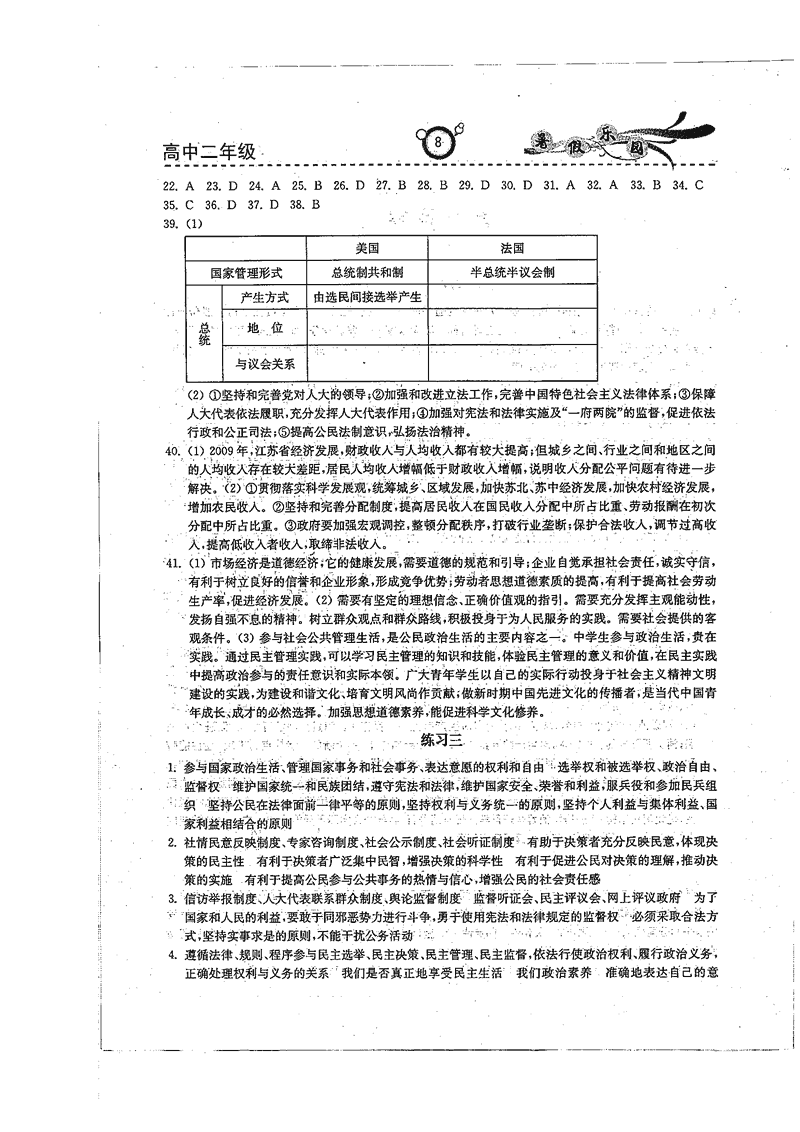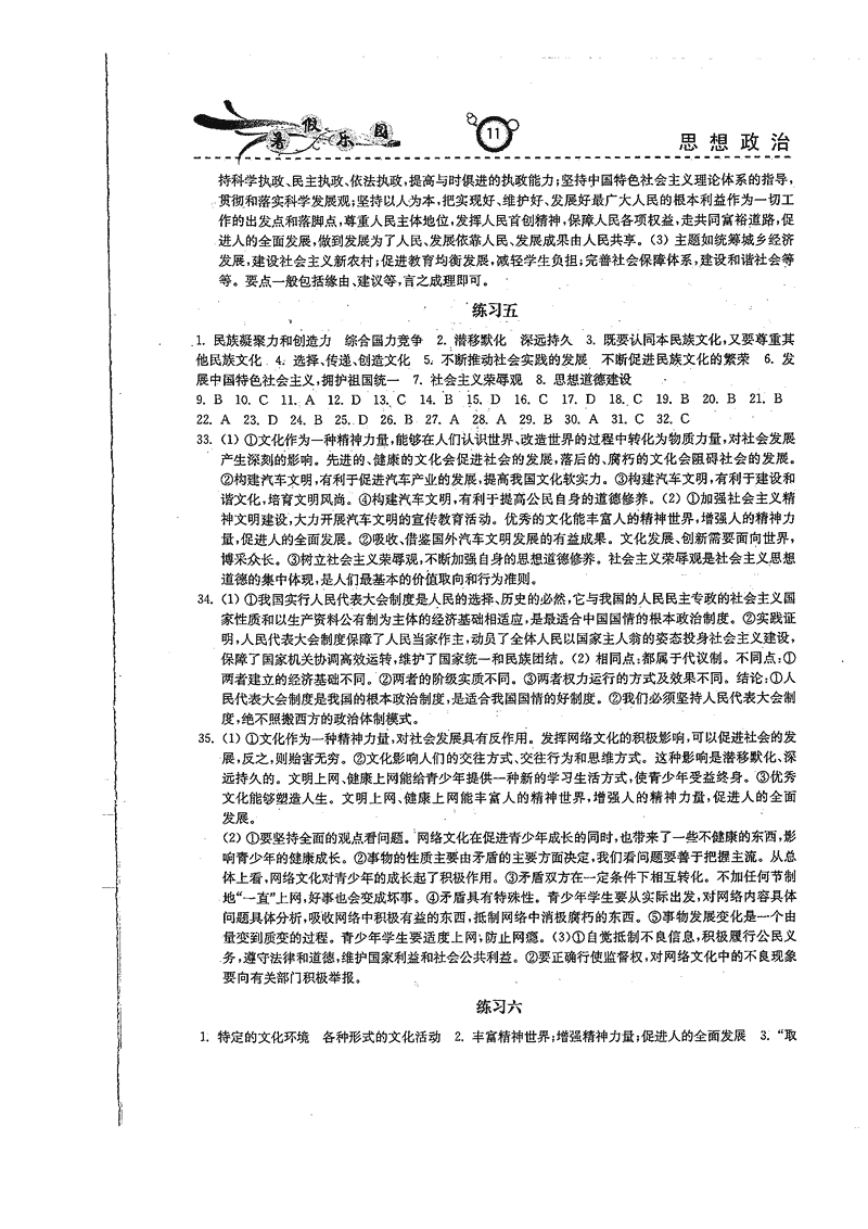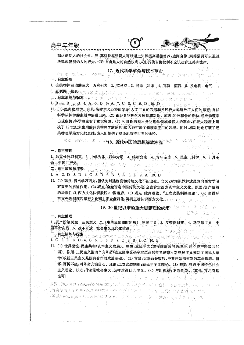 高二政治历史暑期作业参考答案(暑假乐园)