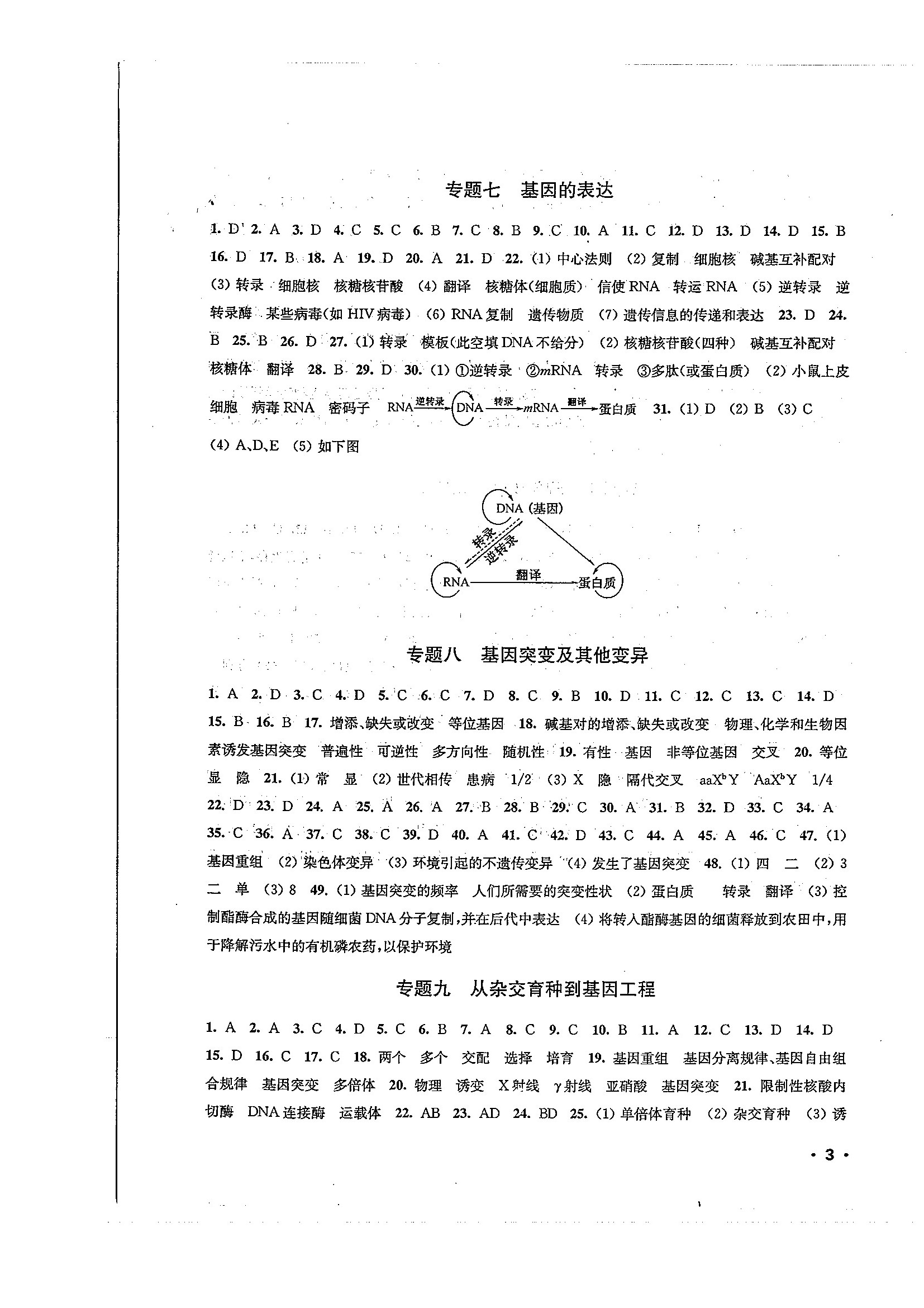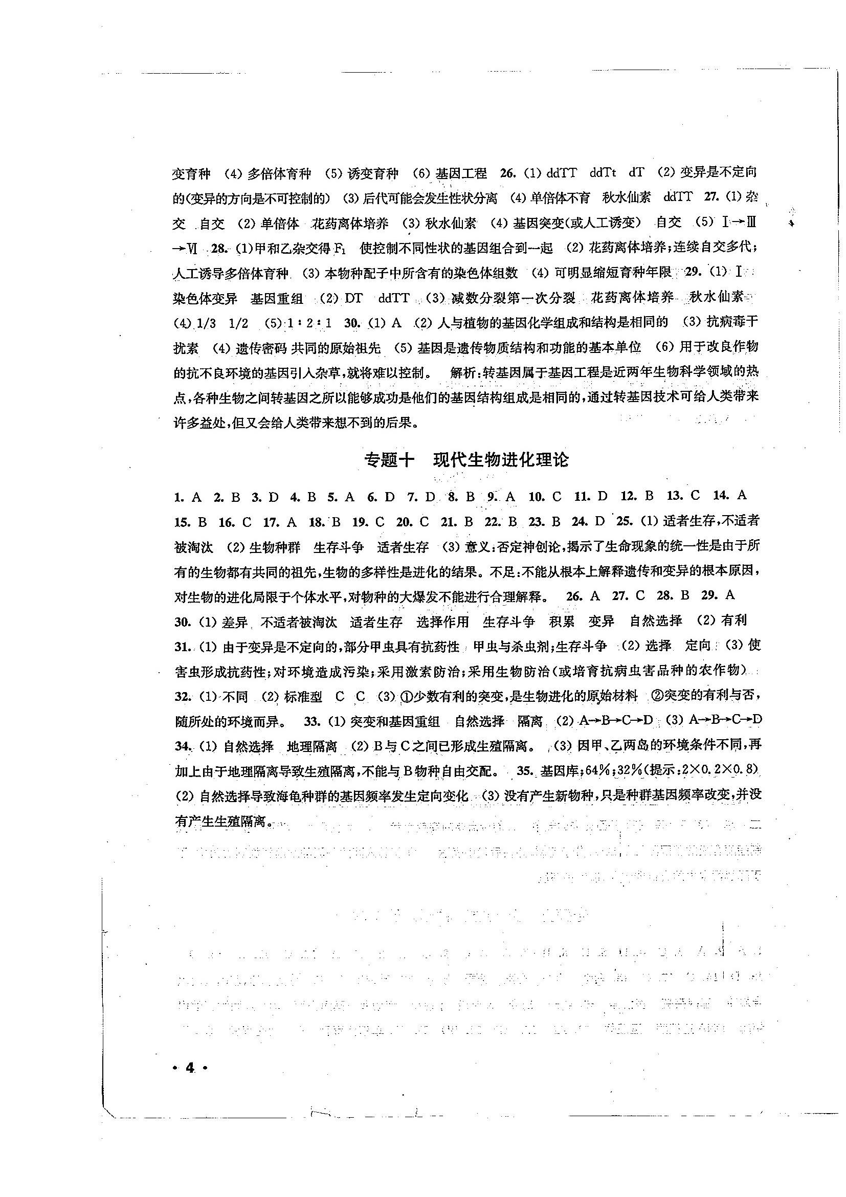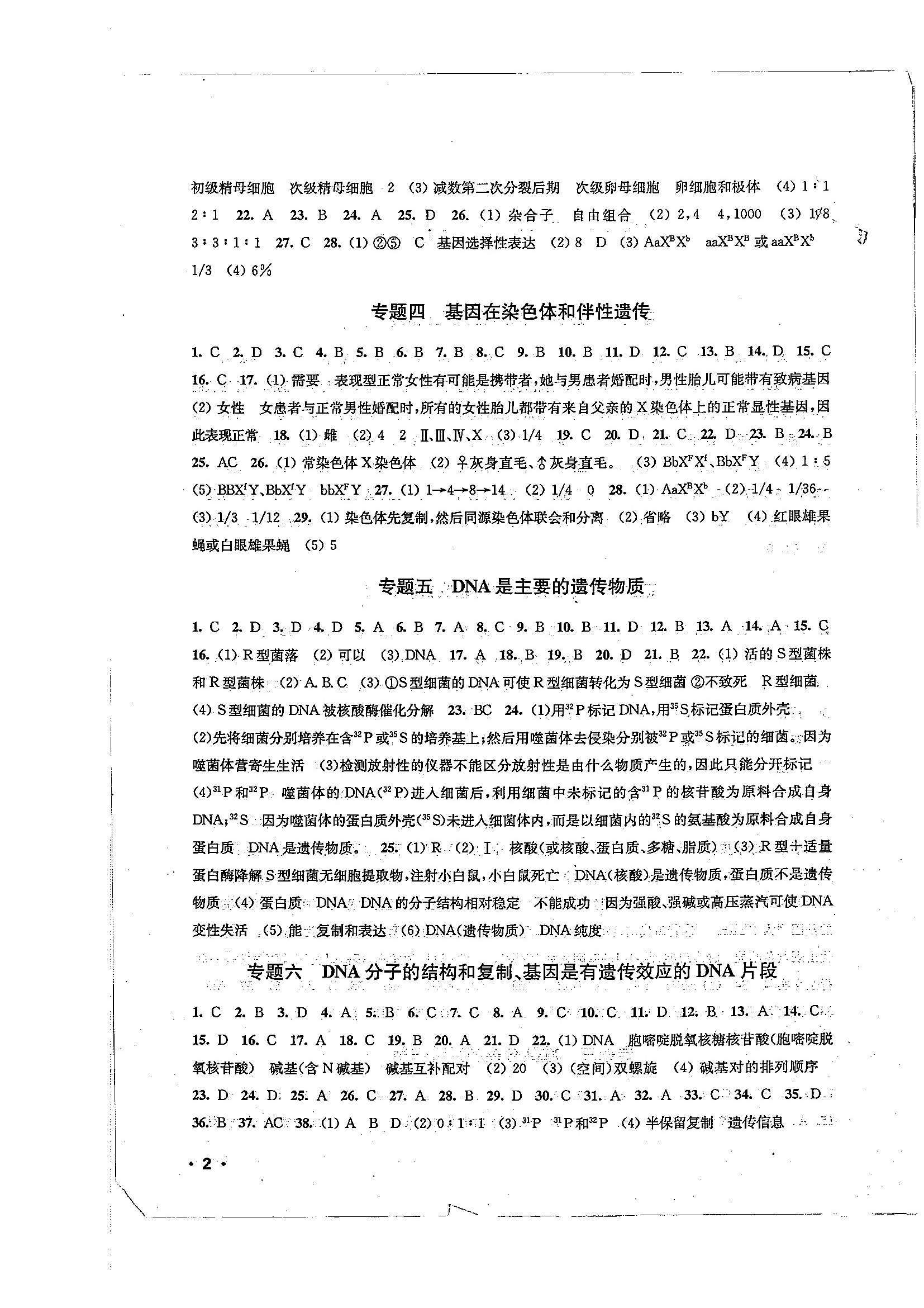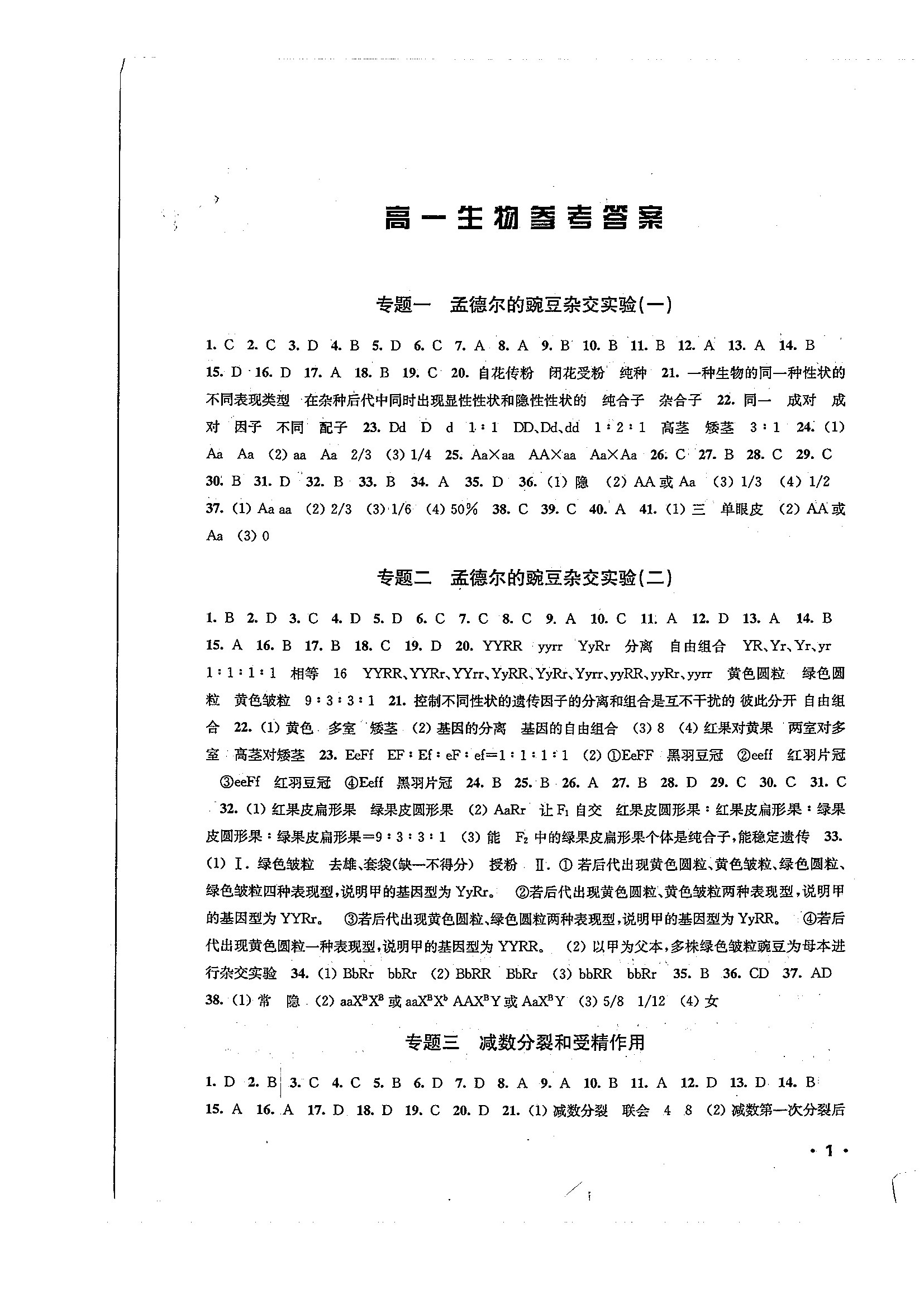 高一生物暑期作业参考答案