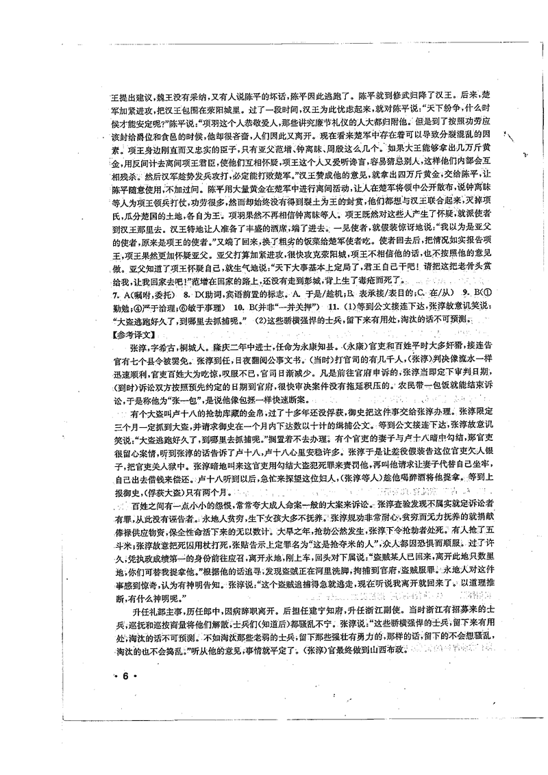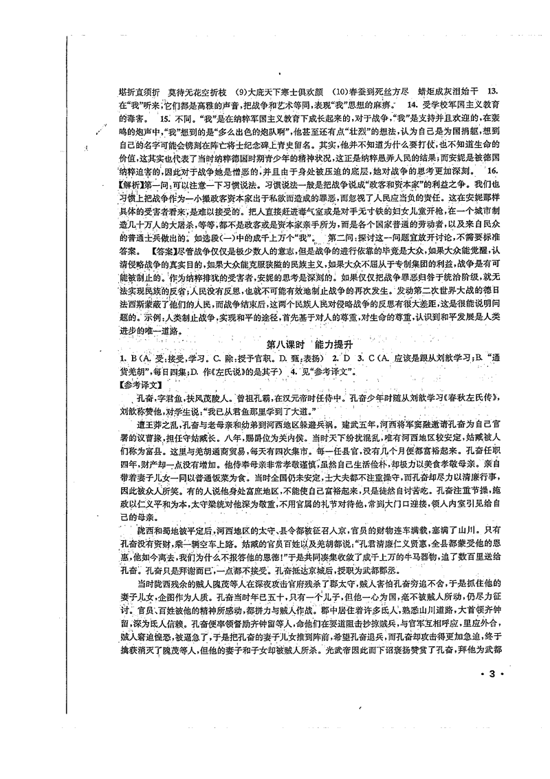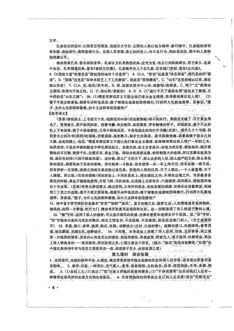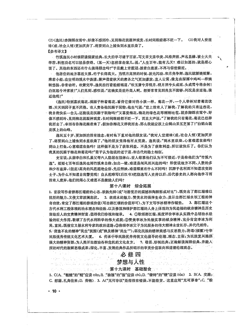 高一语文暑期作业参考答案