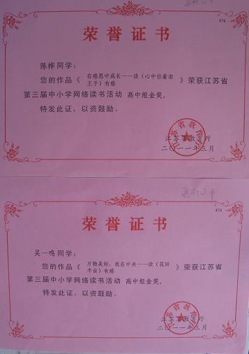 我校网络读书活动获大奖 时间:2011-09-08 来源:本站原创 作者:佚名 浏览:次 分享到: 我校网络读书活动获大奖 由江苏省教育厅组织的第三届中小学网络读书活动中,我校成绩斐然,26名同学获奖,其中陈桦、吴一鸣同学荣获金奖。赵晓莉、从晓获优秀指导教师奖,学校获得团体奖。 打印正文 关闭本页 扫一扫关注通州高级中学