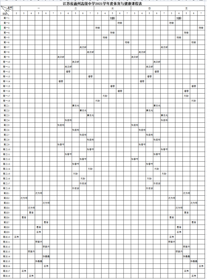 公示四:乐动网页版登入界面2021年度体育与健康课程表