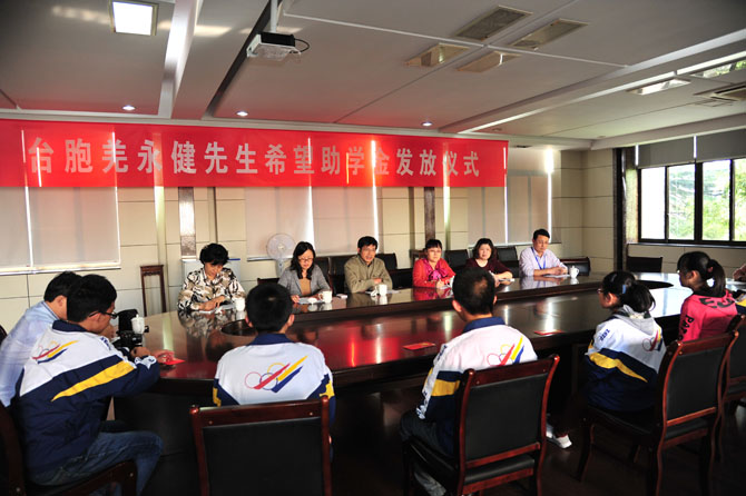10月15日下午,我校在景行楼二楼会议室举行了台胞羌永健先生希望助学金的发放仪式。