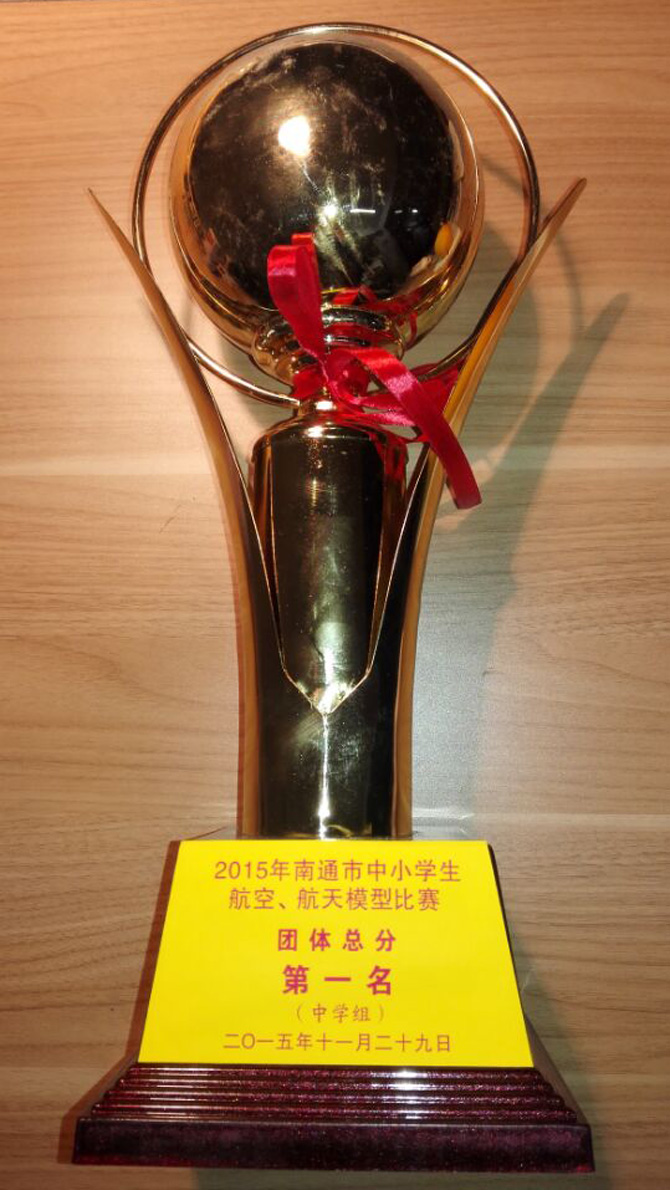 11月28日,在南通市航运学院举行的2015年南通市中小学生航空、航天模型比赛中,我校航模社团在领队许斌副校长、科技辅导员葛犀老师的带领下,不负众望,第十次蝉联中学组团体冠军,在13个单项比赛中共获得8项个人第一名。