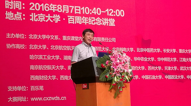 著名作家曹文轩对10篇特等奖作文的点评,让人印象深刻。他赞赏获特等奖的所有选手书写漂亮,指出特等奖习作生动感人的生活写实让他耳目一新,再也不是动辄胡编乱造写别人的故事、写玄幻的故事。他反问大家,一个人的虚构想象可以妄想超过造物主的创造吗?北大副校长高松院士、北大中文系主任陈跃红教授、著名作家阿来等嘉宾也现场致辞。