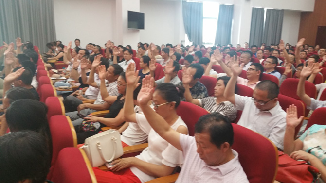 为进一步加强新校区管理,研究新形势,谋求新发展,实现新突破,我校于2016年8月13日至21日召开了以“严格管理新常规,接轨高考新模式,实现教育教学品质新突破”为主题的八届四次教职工代表、工会会员代表大会。