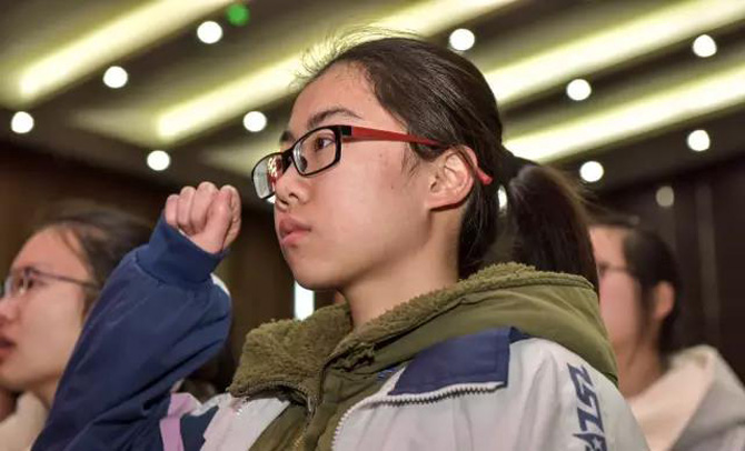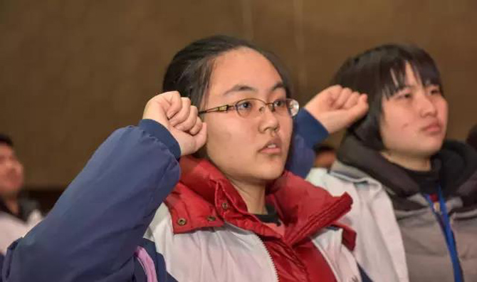 张丽萍老师在代表发言中号召高三同学:让我们在一百天中,以坚定的信心、顽强的意志、自强的精神、务实的作风全力以赴,用拼搏、用奋斗铸就六月辉煌。高三20班邢逸旻同学代表全体学子表达了追求理想的坚定:我们必须全身心投入,有效利用每一分钟,上好每一节课,做好每一份笔记,完成好每一科作业……这条路上,尽量走得精彩,走得抬头挺胸!