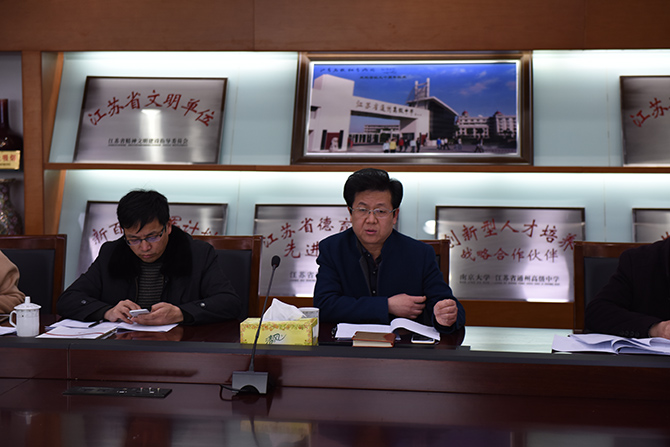 3月24日,授江苏省教育科学规划办公室委托,南通市教育科学规划办公室与通州区教育科学规划办公室组成联合论证组,对我校“江苏省教育科学‘十三五规划’首批课题”进行现场论证。我校共有四项课题取得省市立项资格,分别是季仲平校长主持的省重点自筹课题“和谐人培养目标下的共生课程建设研究”,何忠锋主任主持的省规划课题“基于深度学习的政治课主题教学实践研究”,马进老师主持的市规划课题“聚焦高中数学素养提升的教学实践研究”,徐卫东老师主持的市规划课题“高中数学教学中学生异质思维培养研究”。