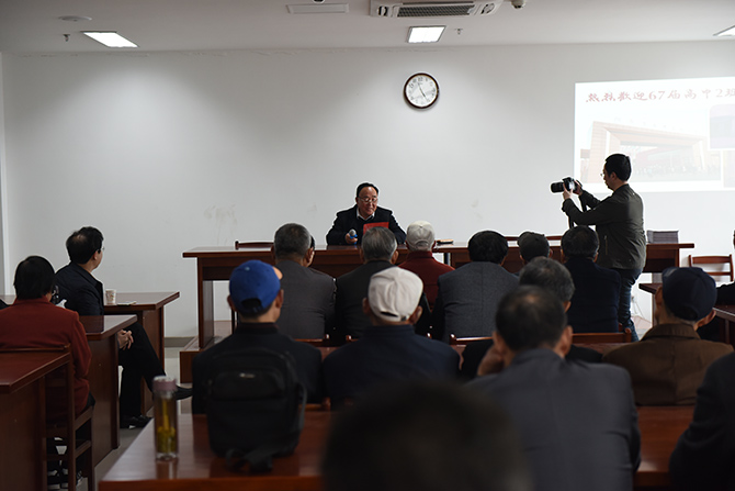 校友们推举老班长为活动献词,他代表大家表达了四点感慨:回忆母校的过去,骄傲得很;观看母校全新的现在,高兴得很;展望母校辉煌的未来,激动得很;总结自己战斗的历程,自豪得很。季仲平校长代表学校致欢迎辞,他向校友们深情鞠躬感谢大家的母校情怀,介绍了学校南迁前后的变化,汇报了近年来的发展、学校共生文化建设及取得成绩,特别提到正在筹建中的校史馆是记录学校发展和校友成长的重要场所,离不开校友们的关心和支持。