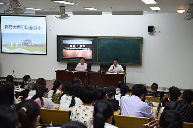 季仲平校长发表了以“得其大者可以兼其小”为主题的讲话,与大家交流青年教师的发展方向。季校长说,作为高层次学校,我们不能只通过学生成绩来证明教学,还要通过教师发展来彰显教育,建设教师发展型学校是我们的应然之举。他对与会青年教师提出了五点要求:拥抱事业,心向境界;怀揣师爱,温暖彼此;秉持操守,德化生命;丰富素养,提升格调;胸怀大局,成就校我。他希望全体青年教师成为学校教学的骨干中坚,成为学校办学的中流砥柱,成为学校发展的可靠继承者。