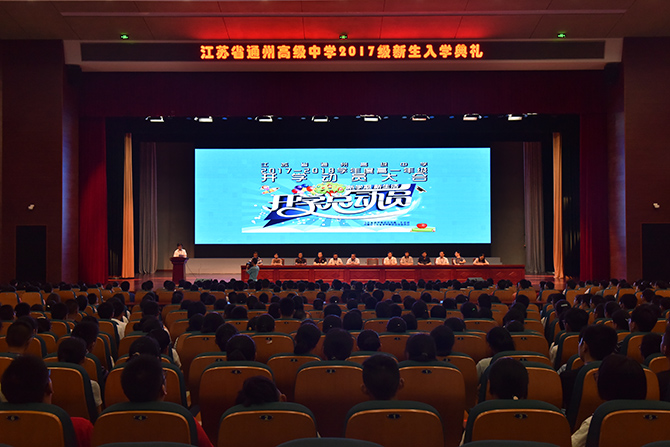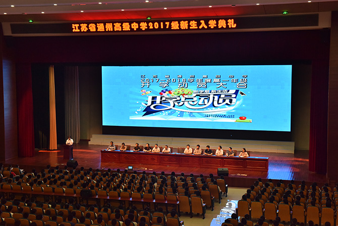 季仲平校长首先致辞,代表学校党委、校长室,向全体新生致以热烈的欢迎!他说:“作为新通高人,你们是荣誉的继承者也是开创者,是历史的延续更是历史的拔高,从今天起,你们的命运与通高命运相融相联!”他希望大家能记住初心,让优秀成为习惯,甘做学习的苦行者,主动拓展成长视野,勇于树立责任意识,共同铸就属于校我的荣誉历史!季校长的殷殷期望激起高一新生的共鸣。