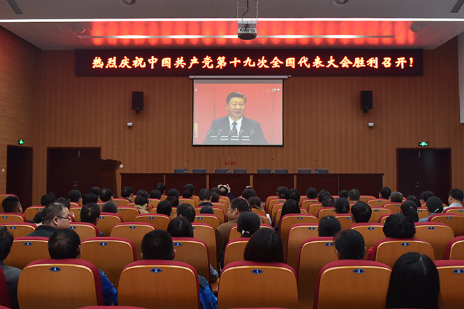 上午9时,学校党委会、校长室组织全体党员干部、中层以上领导以及部分教师、学生干部代表,在人和大厦视频会议室集中观看“十九大”开幕会。季仲平校长、曹光明书记等学校领导前排就坐,认真聆听习总书记工作报告,认真记录讲话重要内容。