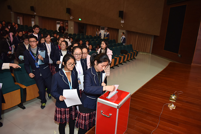 随后,第21届校学生会副主席孙顾宇同学汇报了学生会一年的工作成绩和经验,并对新一届学生会提出希望。新一届学生会设委员14名,17名候选人进行了激情洋溢的竞职演讲,表达了自己为学校和同学服务的强烈愿望。大会通过无记名直接差额选举的投票方式,最终选举出丁又也、于宏博、邓煜桑、孙顾宇、李玉彤、张宸浩、钱妍、高楚姗、浩波、黄悦、曹吴越、蔡宁、翟易、戴懿翔等14名同学为新一届学生会委员。