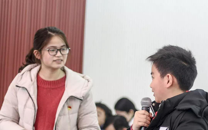 学生志愿者不仅给孩子们带去精彩的表演节目,还给他们准备了课外书籍,互动提问,讲解学习方法。在轻松欢快、充满温情的活动中,孩子们度过了愉快而温馨的时光,大家互送祝福,不忍分别。