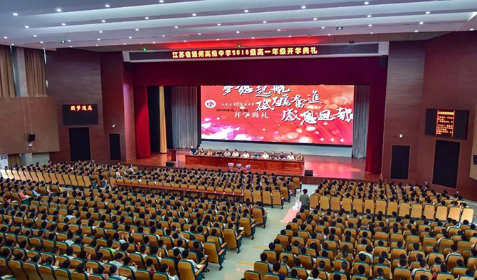 入学典礼在嘹亮的国歌声中开始,季仲平校长首先给录取我校的中考全区前十名同学颁发了“华伟”奖学金,以此鼓励全体高一新生砥砺奋进,继续前行。高一6班王乐章同学在代表发言中表示,要树立远大理想,在美丽通高,与大家共赴一场“遇见”,让自己成为最好的自己。