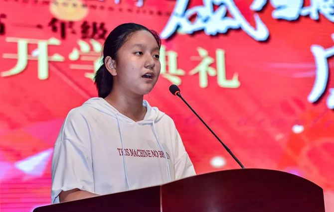 王冰心老师代表高一教师发言,她表达了对同学们跨进通高大门的祝贺,鼓励大家珍惜现在,努力奋斗。她说:只有养成良好的学习习惯,才能翱翔蓝天飞向远方;养成良好的生活习惯,才能为腾飞插上坚强的翅膀;树立远大的人生理想,才能谱写青春时代壮丽华章。