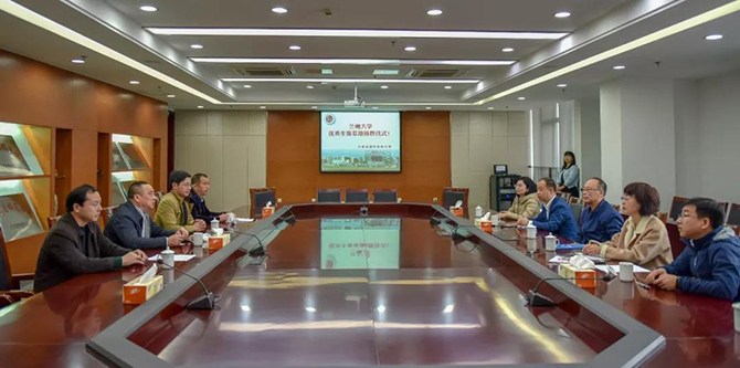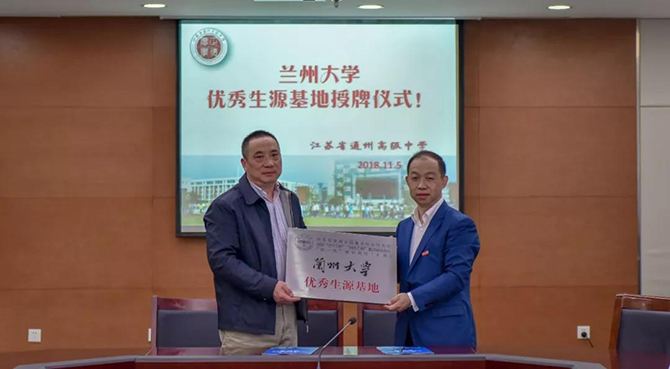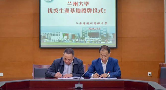 会谈现场,双方签订了“优秀生源基地学校”协议,兰大为学校颁发了“优秀生源基地学校”奖牌。