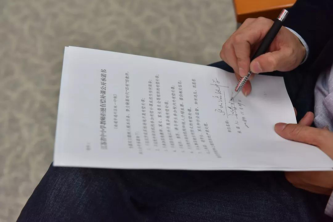 全体教师认真学习《江苏省中小学教师拒绝有偿补课公开承诺书》后,在学校责任督学的注视下、在摄影师的镜头里,每一位教师按照要求,郑重地签上了自己的名字。签字仪式后,老师们纷纷表示将以此自警,坚守淡泊名利的净心,执着教书育人的初心。