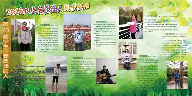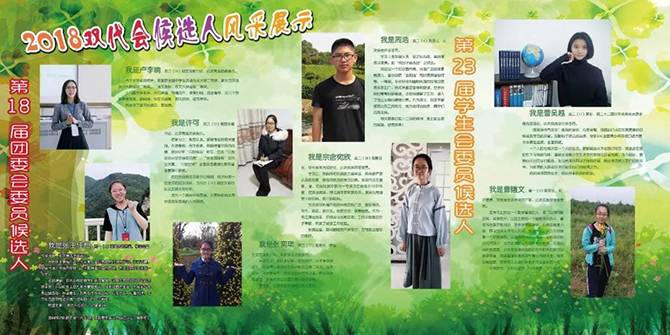 随后,团委金丹丹副书记作了第十七届团委会工作报告,第二十二届校学生会委员高楚姗同学作了第二十二届校学生会工作报告,工作人员宣读选举办法和选举工作人员。按照《选举办法》,此次大会设团委会委员7名,学生会设委员14名。团委会6名学生候选人和学生会17名候选人依次作90秒脱稿竞职演讲,团员代表和学生代表进行投票。根据得票数,大会选举出卢李响、朱烩(教师)、许可、张琳琳(教师)、金丹丹(教师)、周浩、宗含宛欣等为新一届团委会委员,选举出于宏博、王乐章、王怡、李佳瑶、张奕、张宸浩、重楼、顾树焕、高楚姗、曹吴越、葛子澄、戴懿翔、瞿朱毅、瞿铖等为新一届学生会委员。