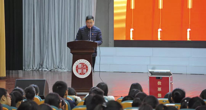12月15日晚,学校涵礼堂暖意洋洋,共青团乐动网页版登入界面第十八次代表大会、乐动网页版登入界面第二十三次学生代表大会在此隆重召开。季仲平校长、许斌书记、张圣兵副校长以及教务处赵建华主任、政教处巫灿烨主任、政教处王建军副主任、团委金丹丹副书记,503名团员代表和学生代表出席了大会,政教处主任、团委书记巫灿烨老师主持会议。