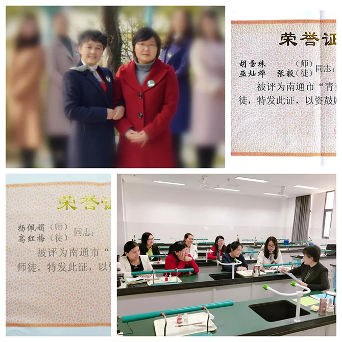 优秀的团队有着优秀的传统继承,“青蓝工程”是成就优秀的温暖襁褓。在学校组织下,生物组的“青蓝工程”成效卓然,生成了组内气象,为青年教师的成长提供了良好基础。教研组、备课组集体活动推动青年教师前行,前辈“率先垂范”为青年教师树立了榜样,前辈毫无保留的“浑身解数”促使青年教师快速成长,多位师徒被评为“南通市优秀师徒”。