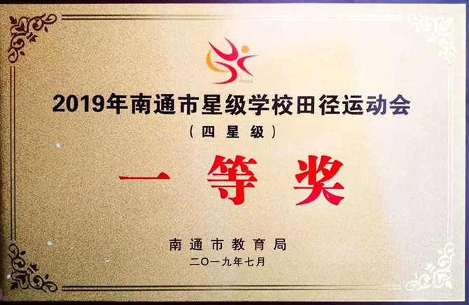 2019年南通市星级学校运动会落下帷幕,我校田径队延续上届团体冠军的风采,在28个四星级高中队中获得一等奖。
