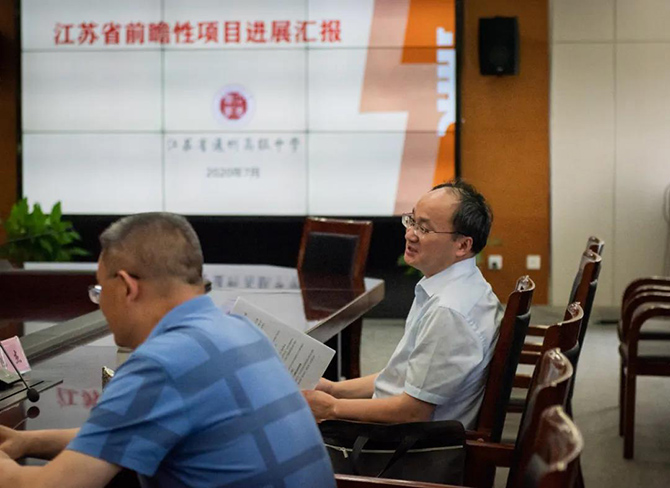 交流环节,季仲平校长向专家们介绍了我校特色的共生文化和学校近年来的发展态势,强调了学校文化对学校发展的磁场作用。何忠锋主任代表学校前瞻性项目组作了项目实施与进展的工作汇报,重点汇报了去年省专家组现场调研指导后的工作情况。