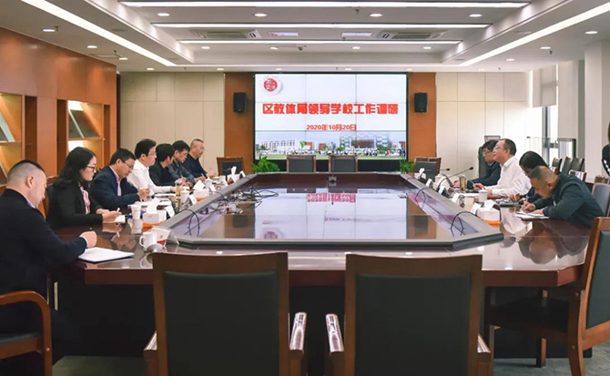 10月20日,区委教育工委书记、区教体局局长丁华到我校调研教育教学工作,区教体局党委副书记、区政府教育督导室专职副主任薛小玉,区教体局副局长胡清华、办公室主任吴小虎等领导陪同调研。学校校长室全体成员参加了调研座谈。