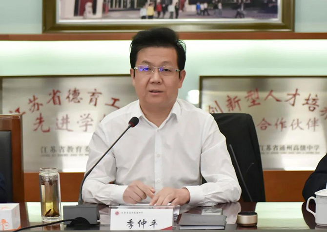 丁华局长对我校办学成绩给予了充分肯定,他指出,近年来通州中学狠抓管理,激活内驱,在教育教学改革不断深化的背景下,乘势而上,勇于作为,以显著的办学成绩为通州教育作出了贡献。针对学校提出的发展要求,他进一步作了详细了解,并表示区教体局一定组织召开专题会议,为学校创建省高品质示范高中、提升高质量发展水平提供最大保障。同时,他就全区开展的“中小学师德师风突出问题专项治理工作”,向学校提出了“加强组织领导、制定治理方案、全面宣传到位”等具体要求。