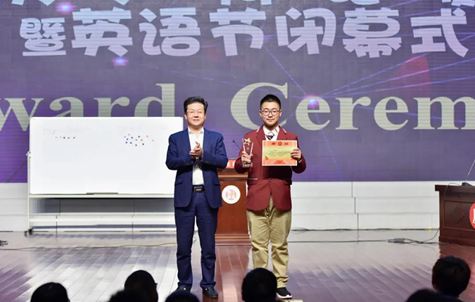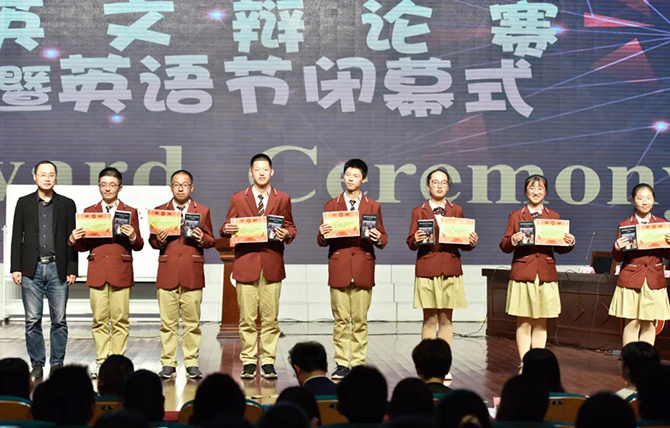 随着英语辩论赛的结束,我校首届英语节圆满落幕,季仲平校长在颁奖结束后致闭幕。校长娴熟的外语,激情的致辞,赢得学生雷鸣般的掌声!