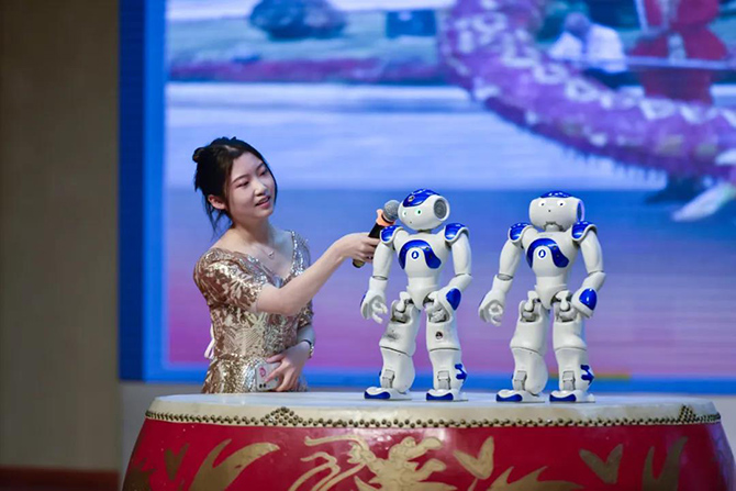 整场演出融合了许多科技元素,如机器人NOW的讲解与场景的营建等。现代科技与传统文化的美好邂逅,既让传统文化走进我们的校园生活,更让科技创新充满温度与亲和力。