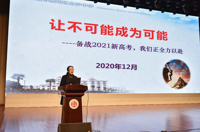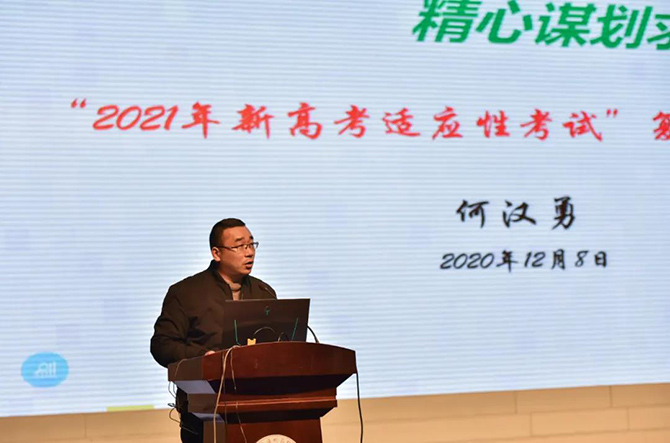 区教体局胡清华副局长指出,在新高考背景下,我们一要准确识变,二要科学应变,三要主动求变。胡清华副局长希望全体教学管理人员、高三教师深刻领悟党的育人方针,全面理解新高考考试评价体系,把握高考备考方向,紧盯目标争创一流,全面打赢新高考开局之战。