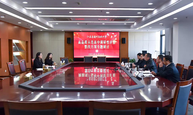 葛书记带领第一督导组与学校班子成员就“高品质示范高中建设”进行专题研讨,校党委书记、校长季仲平向督导组通报了高品质示范高中建设调研性评估反馈问题整改方案。10月11日我校接受了通州区高品质示范高中建设调研性评估,收到评估反馈意见后,学校第一时间成立了问题整改工作组,在深入分析现状、充分接纳专家意见的基础上,制定形成整改任务清单。各分管领导、整改责任部门根据整改清单建立了整改台账,落实对账销号,确保整改到位,在解决问题的同时保证整改具有前瞻性、可行性和长效性。