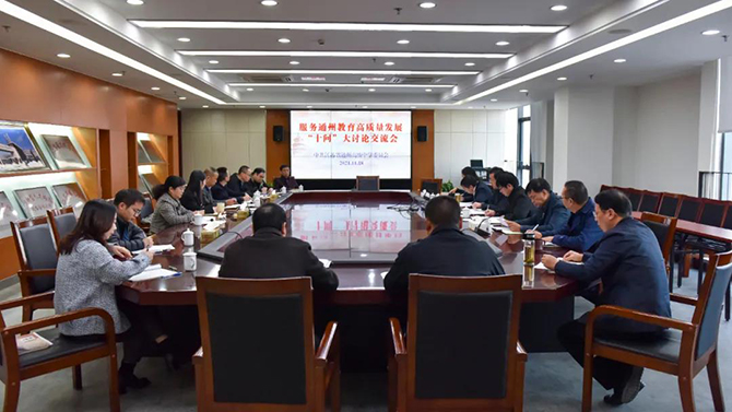 11月18日上午,我校党委委员、班子成员在八楼会议室举行了“服务通州教育高质量发展‘十问’大讨论”活动。活动由校党委书记、校长季仲平主持,全体办公会成员参加交流。