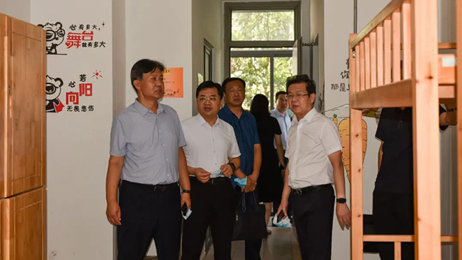 曹培锋副局长一行首先参观了校园,季仲平校长随行介绍了校园整体布局和文化环境,就圆梦圃、校训墙、“书山学海”雕塑等文化景观的寓意作了解释。在学生宿舍、学生食堂,考察团一行实地参观并对宿舍环境、食堂管理表示高度肯定。